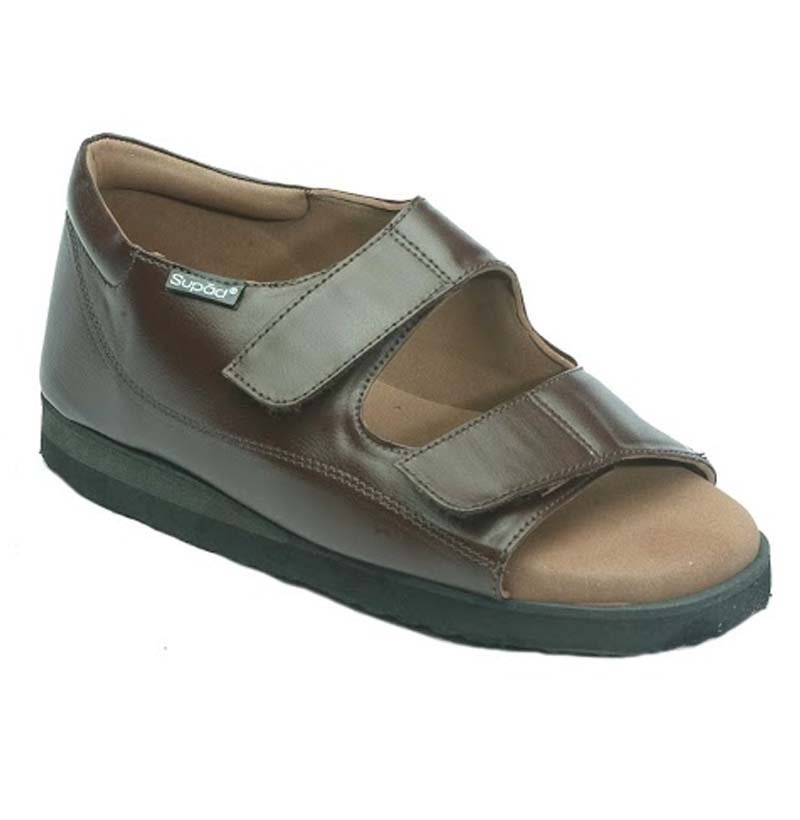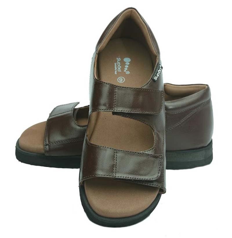 Footwear with a soft MCP lined insole, solid back support and adjustable straps.